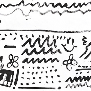 Today, I created several pieces of work to music, making marks on the page. Our teacher put on a music playlist, and using pens, Indian ink and a paintbrush, I made marks and drew symbols for what the music and the beat naturally made me think of creating.